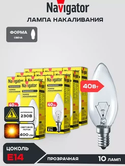 Светильник e14 Navigator прозрачная свеча 40 ВТ