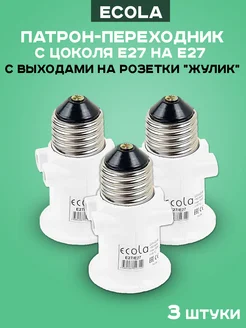 Переходник патрон белый с цоколя Е27-Е27 и розетку