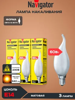 Лампочка Navigator вьющаяся свечаа на ветру 60 ВТ Е14 640Лм