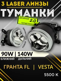 Противотуманные фары на Весту Reno Линза и 3 лазера
