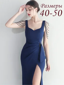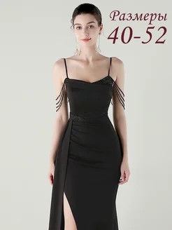 Платье вечернее в пол с разрезом с бусами