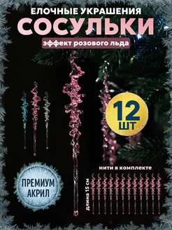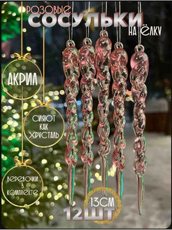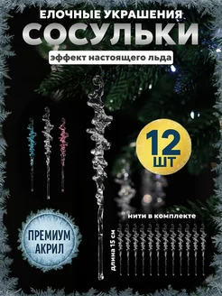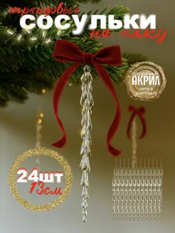Елочные игрушки набор сосульки прозрачные 24 шт