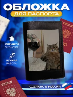 Обложка на паспорт с принтом "кот и вино"