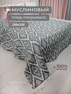 Хлопковое мягкое покрывало на кровать или диван 200x240