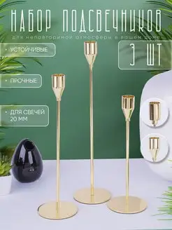 Подсвечники для свечей набор металлический 3шт