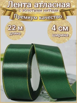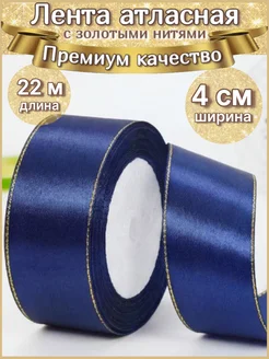 Лента атласная с золотыми нитями 4 см