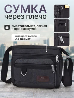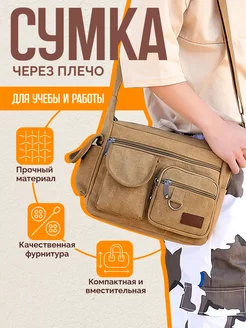 Сумка через плечо тканевая почтальонка для работы и учебы