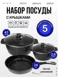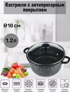 Кастрюля с усиленным антипригарным покрытием с крышкой