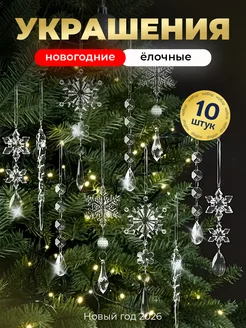 Новогоднее украшение на елку сосульки и снежинки 10 шт