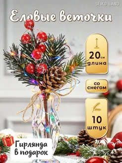 Набор еловых веток с ягодами и шишками 10 шт 20см