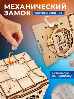 Конструктор деревянный 3д Сейф, модель игрушка для мальчиков