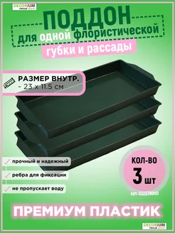 Поддон для одной флористической губки, цветов и рассады 3 шт