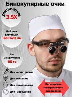 Налобный осветитель с бинокулярами 3,5x и линзой +1,5