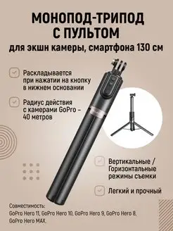 Монопод-трипод с пультом для экшн камеры, смартфона 130см