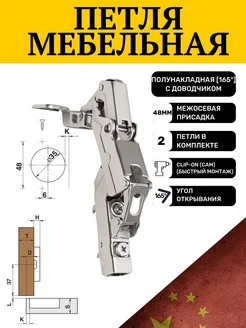 Петля мебельная накладная 155 ° с доводчиком фурнитура