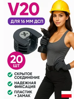Стяжка эксцентриковая V20 для 16 мм ДСП цвет антрацит