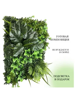 Фитокартина с подсветкой 60 40см из искусственных листьев