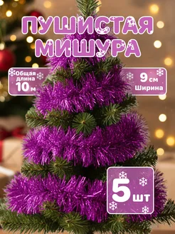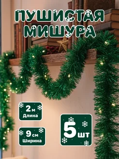 Мишура новогодняя зеленая на елку 5 штук пушистая и толстая