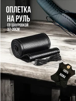 Кожаная оплетка на руль со шнуровкой перфорированная