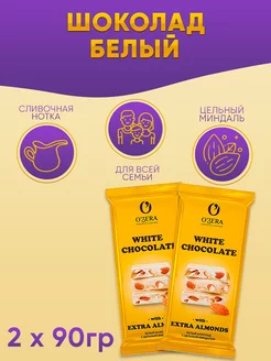 O'Zera шоколад белый White and Extra Almond 2 шт по 90 г