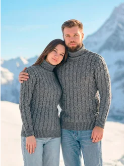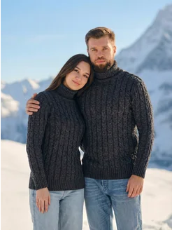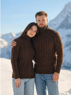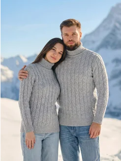 Свитер теплый с горлом пуловер вязаный больших размеров