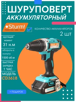 Аккумуляторный дрель шуруповерт Штурм CD3618