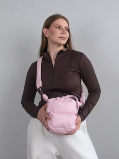 Сумка дутая спортивная розовая женская маленькая
