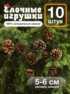 Елочные игрушки, шишки на елку, размер 5-6 см, 10 шт