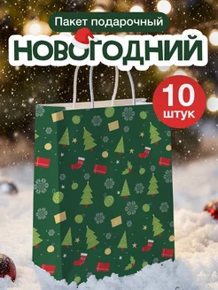 Пакеты новогодние набор для упаковки подарков 10 штук