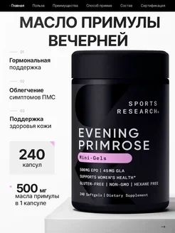 Масло примулы вечерней 500 мг для женщин, 240 капсул