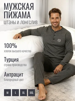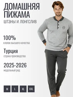 Пижама теплая зимняя со штанами с длинным рукавом новогодняя
