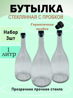 Бутылка 1 литр Бэлл с пробкой Камю для домашних настоек 3шт