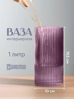 Ваза для цветов и сухоцветов стеклянная декоративная 1 л