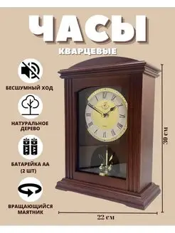 Часы каминные из натурального дерева