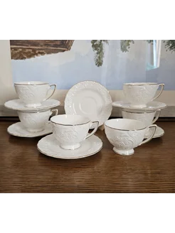Кофейный сервиз фарфоровый на 6 персон с лепниной