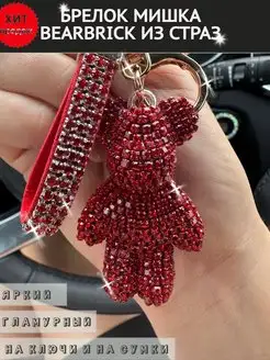 Брелок со стразами на сумку и ключи мишка Bearbrick красный