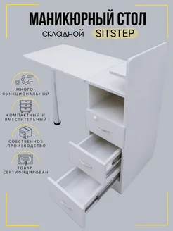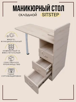 Маникюрный стол складной 3 ящика, с ручками, сонома