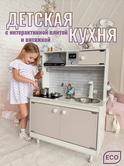 Детская кухня с интерактивной плитой и вытяжкой бежевый