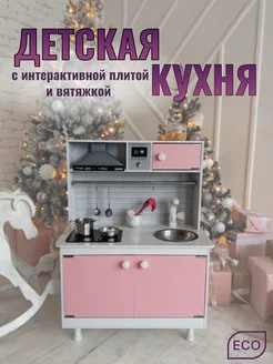 Детская кухня с интерактивной плитой и вытяжкой роза