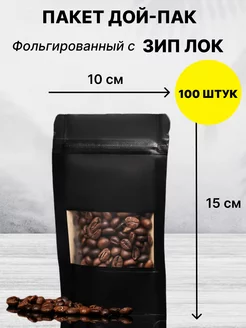 Пакеты зип лок дой-пак черный матовый 100х150 мм с окном