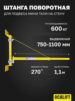 Штанга поворотная для подвеса мини тали на стену 750-1100мм