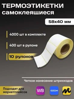 Этикетки 58х40 мм Термоэтикетки самоклеящиеся 10 рулонов