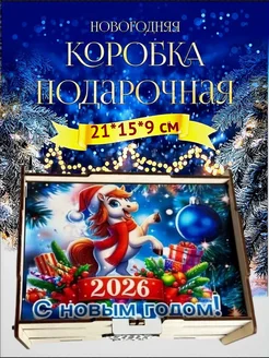 Коробка подарочная новогодняя с наполнителем с гирляндой
