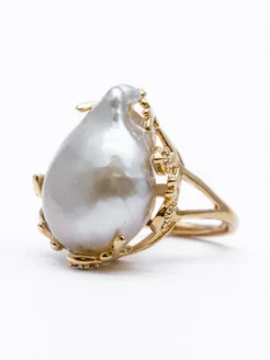 6248 Роскошное кольцо барочный жемчуг в позолоченной оправе
