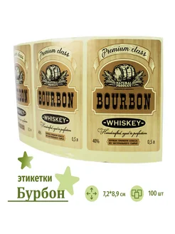 Этикетка "Бурбон" для бутылки 7 2*8 9 см 100 шт