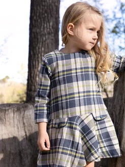 Фланелевое осеннее платье в клетку с длинным рукавом в садик