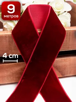 Лента бархатная 3 8 см*9 метров бордовый №240