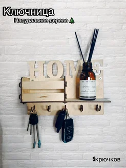 Ключница настенная HOME Орех 24x17x7см 5 крючков
