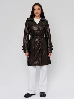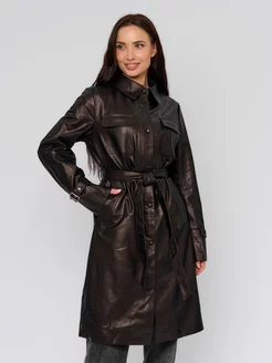 Плащ кожаный тренчкот оверсайз длинный с поясом