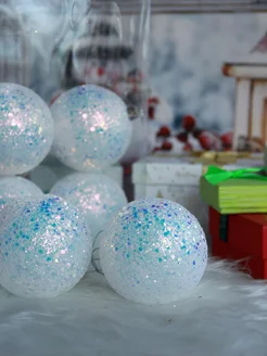 Новогодние шары белые с мерцанием на елку набор 6 шт